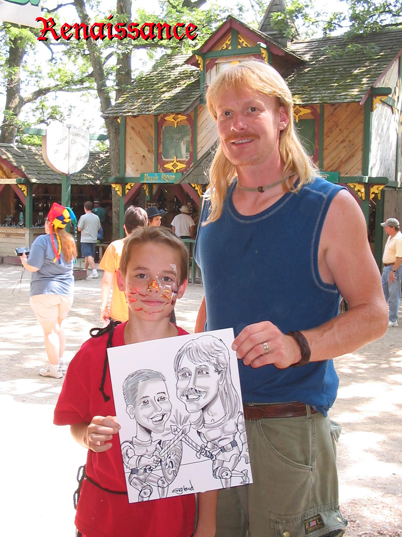 My event & party caricatures are usually black & white and are drawn to accomodate as any as possible. I average 15 per hour, which includes full body and an activity. Faces only I can do 18 per hour. I always put TLC into every drawing.